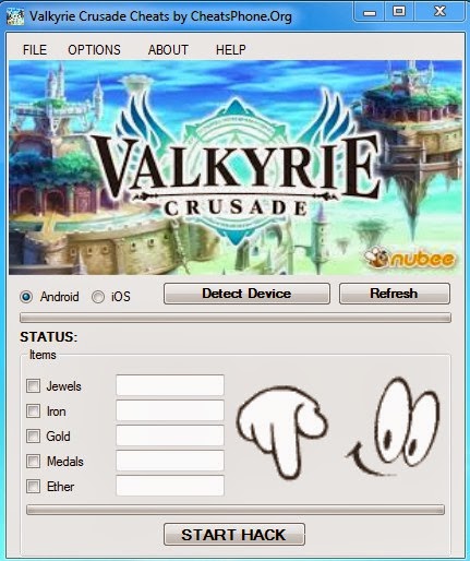 2. Start and run the Valkyrie Crusade Hack for Android. (Game must be stop)